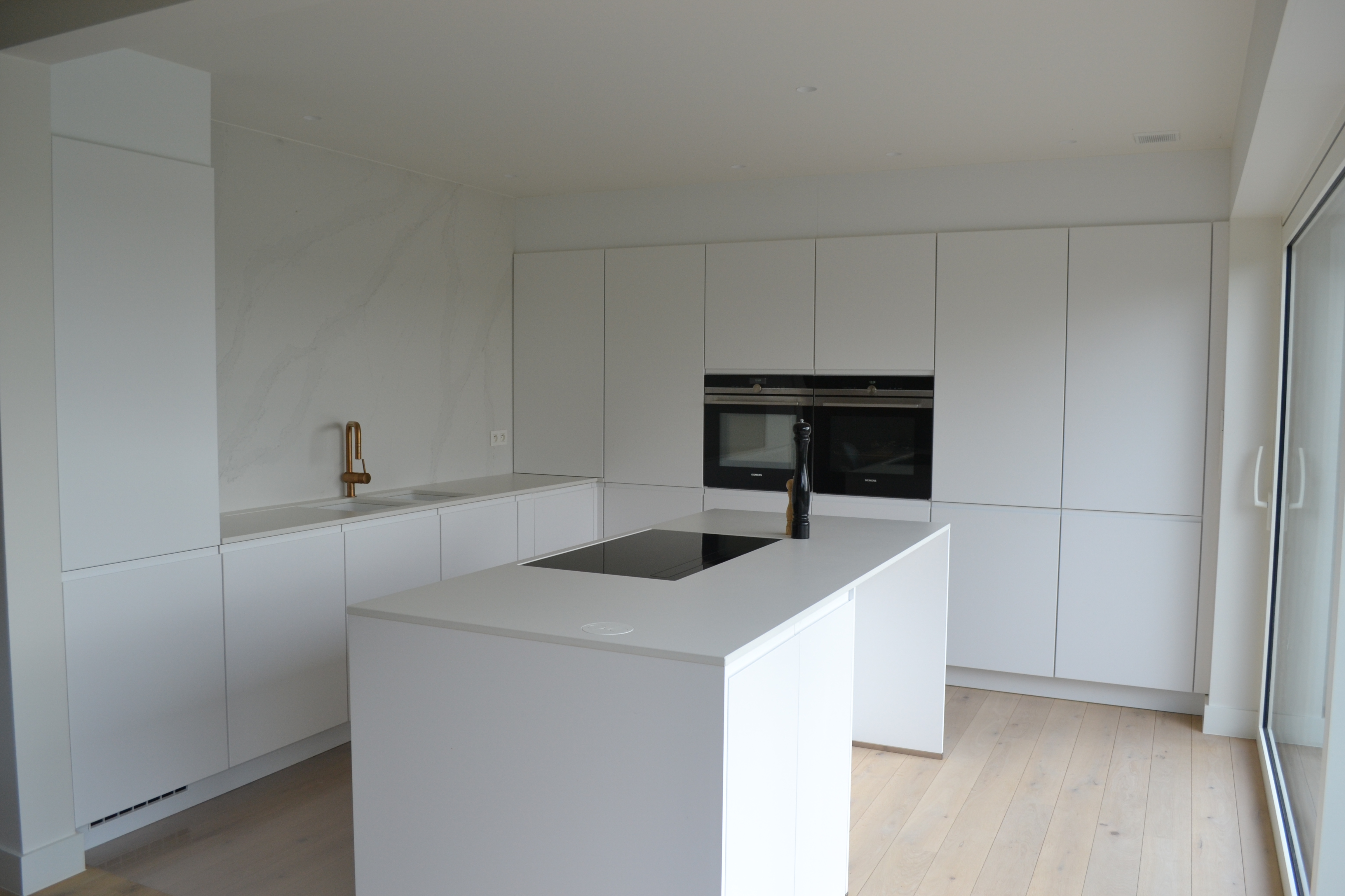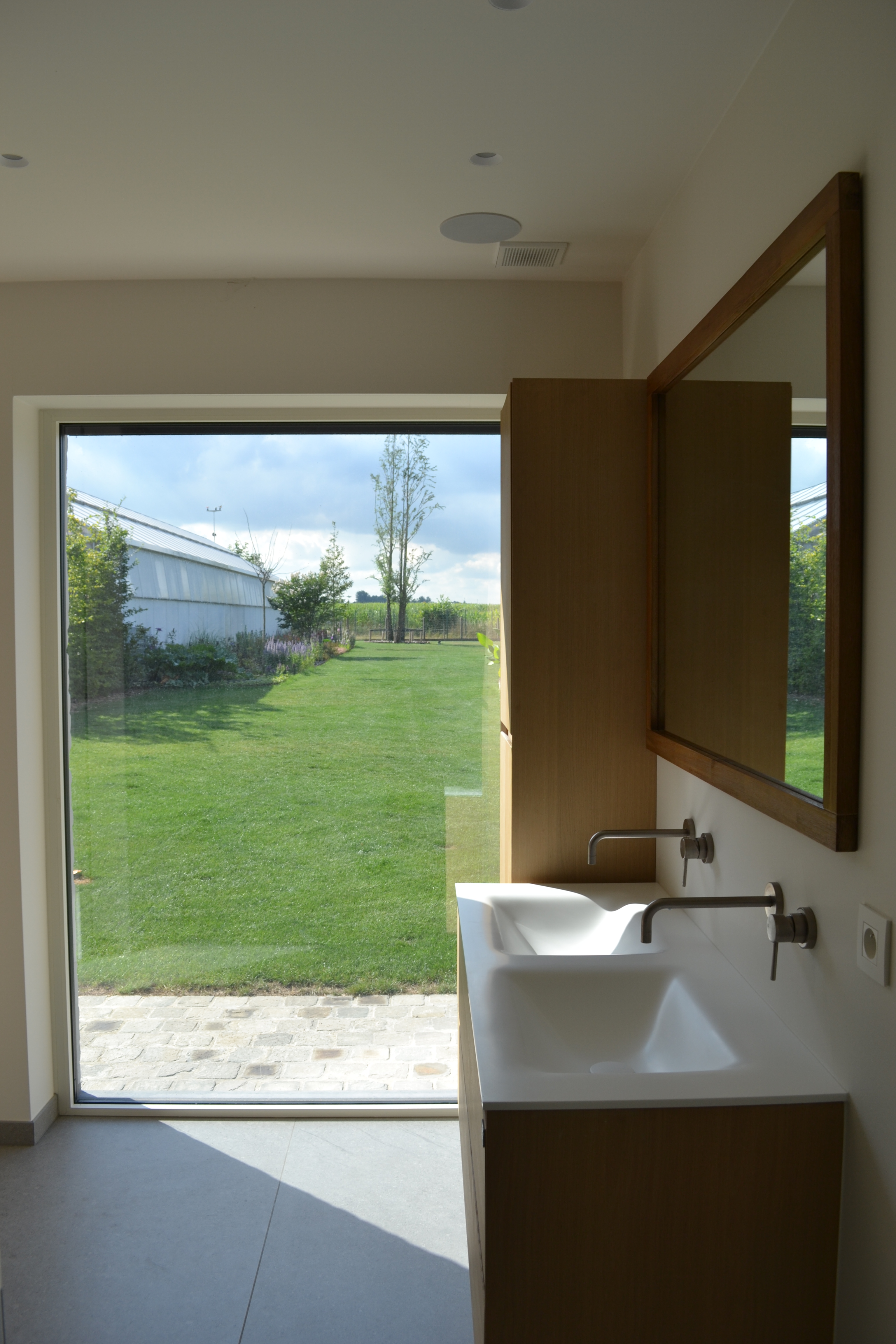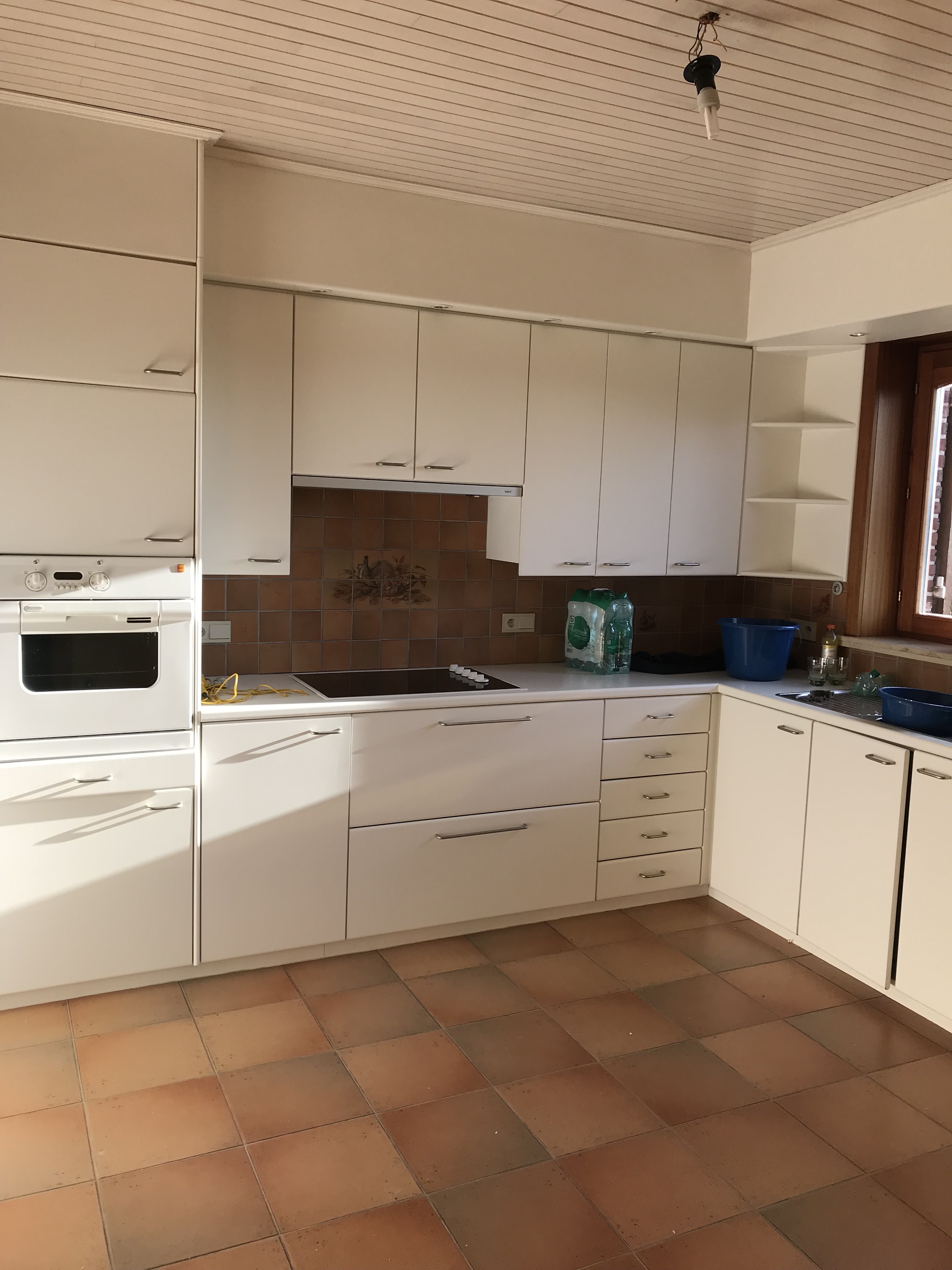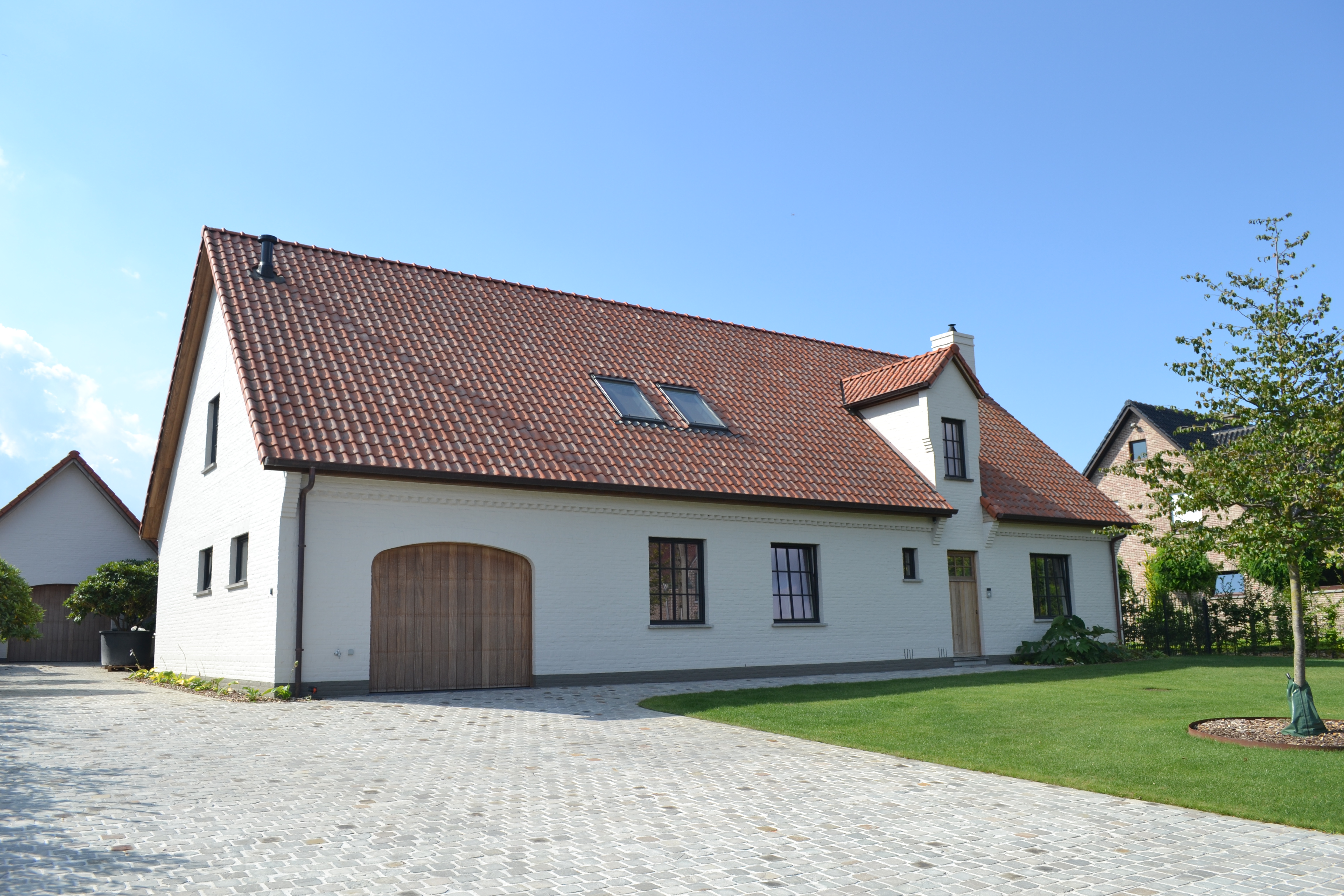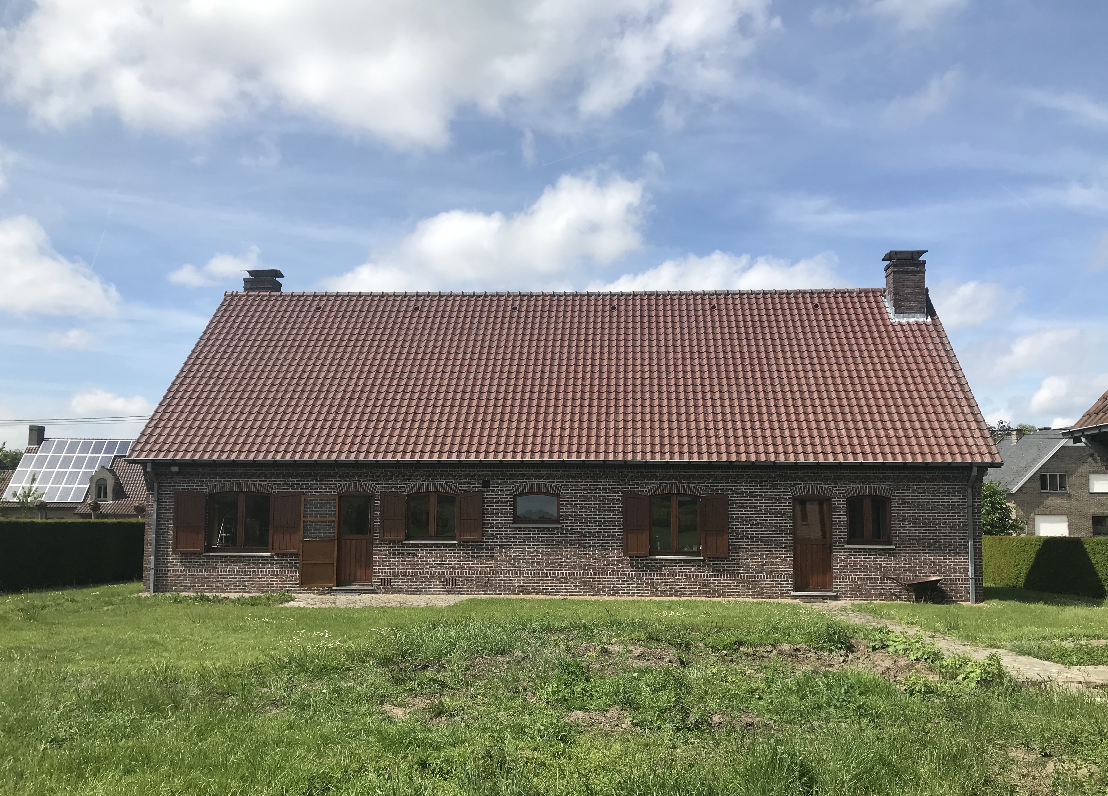 Totaalverbouwing met bijhorende Serre. Het buitenschrijnwerk werd vervangen en de buitengevel werd opengetrokken naar de achterliggende tuin. Het dak werd vervangen door roodkleurige dakpannen en de gevel werd met kalei afgewerkt.